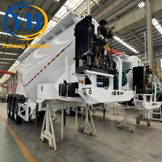 YUHANG dry bulk trailers can adopt V type and W type design structures, double-tube feeding, discharge speed and material residue rate all meet industry standard requirements. Bulk cement tanker trailer is commonly used transportation tools, which must ensure that the tank body has sufficient strength and compression resistance to improve the safety level of operation.