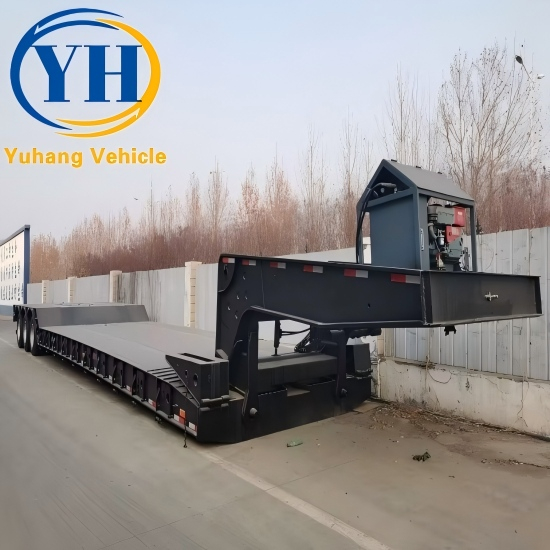 Choose YUHANG, we will provide you with the best service, the most affordable price, and the best quality 3 line 6 axle gooseneck removable trailer for sale. The front connection part of our detachable gooseneck lowboy trailer is used to connect tractors of different brands. It adopts a flexible connection structure, so that the tractor and semi trailer can be separated and connected with each other to adapt to different transportation needs.