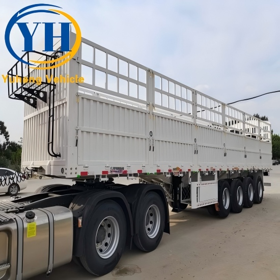 YUHANG factory can provide you with 2 axle, 3 axle, 4 axle fence cargo trailers with a payload of 30-120 tons for you to choose. Alternatively, we design and customize fence trailers for you according to actual transportation needs and cargo types.