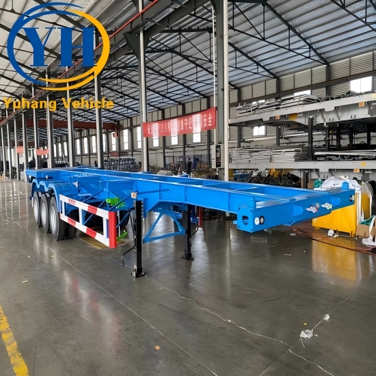 This type of container chassis trailer accelerates the circulation and turnover of goods and occupies an important position in the process of economic development. YUHANG vehicle is equipped with 4/8/12 twist locks to ensure the safety and reliability of containers during transportation without rollover.