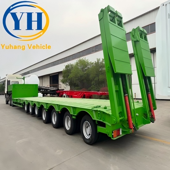 We have lowbed semi trailer for sale with 2 axle/3 axle/4 axle/5 axle/6 axle and more axles, all designed and produced by YUHANG factory itself. The high quality and excellent transportation performance of the trailer are fundamentally guaranteed, and customers can use it with confidence.
