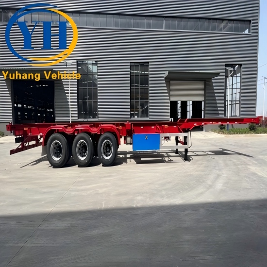 YUHANG factory sells container chassis trailers with 20 foot skeletal semi trailer, 40 foot container chassis trailer, 45 foot skeleton truck trailer with the best price and other types of intermodal container chassis.